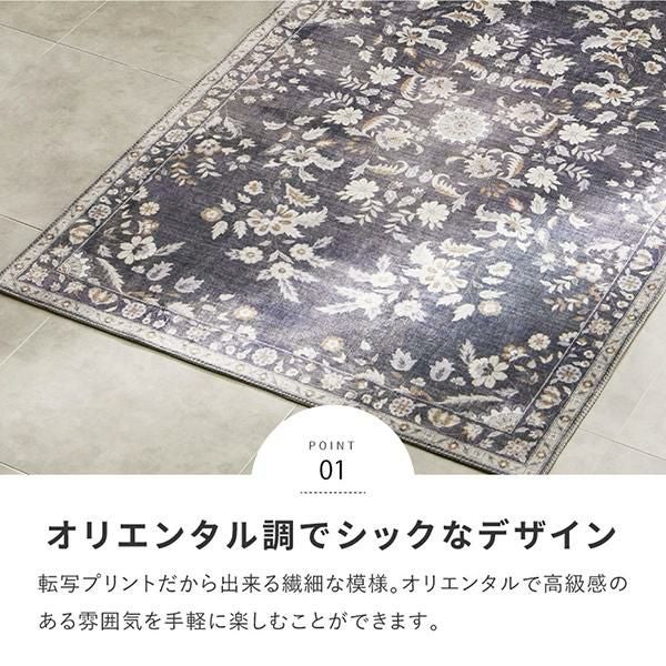 高級感のあるオリエンタル調デザインの転写プリントラグ。転写だからできる繊細な模様の表現と、かすれたようなデザインでシャビーシックなインテリアにもぴったりです。ソフトフランネルのなめらかな肌触りは、思わず素肌で触れたくなるようなタッチ感。薄手でコンパクトに畳めるので収納にも困らず、気分にあわせてお部屋の模様替えができちゃうのも嬉しいポイントです。裏面はズレを軽減するすべり止め付き。ホットカーペット・床暖房に対応しており、オールシーズンで使えます。