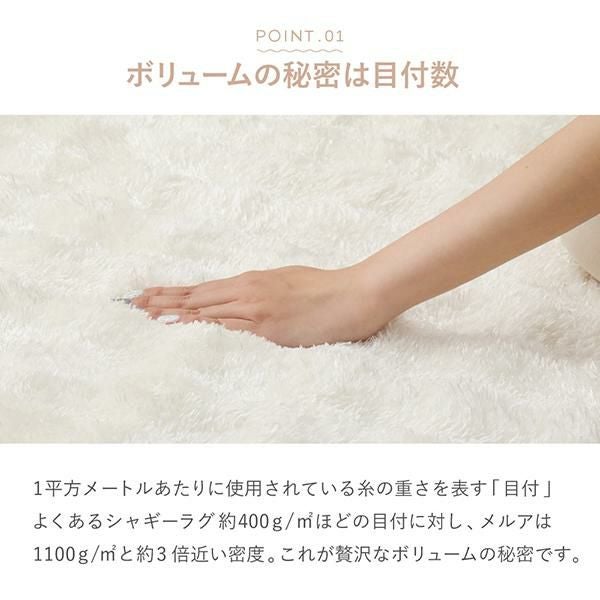 毛足をカットすることで独特のポコポコ感を表現した可愛らしいラグ。なめらかな凹凸でお部屋が一気に可愛くなります♪また、光沢のある糸を使っているので様々な表情を見せてくれます。ボリュームたっぷり1100g/平方メートルの贅沢な目付数。しっかり密度の毛足で生活音の軽減にも役立ちます。手洗い可能なので、いつでも清潔!ホルムアルデヒド試験も通過しているので、安心してお使いただけます。