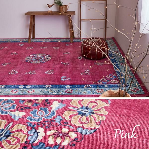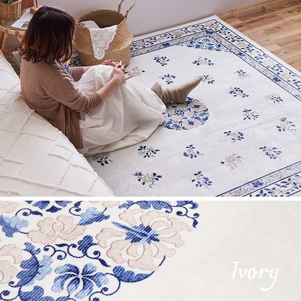 どこか東洋を感じさせるような花柄の絨毯風デザイン。その細やかなデザインを、転写プリントで美しく表現したなめらかフランネルラグです。短毛でやわらかく、お手入れも簡単!汚れても手洗いできるからいつも清潔に使えて安心。また裏面には、ラグがズレにくいよう滑り止め加工が施されています。ホットカーペット・床暖房対応で、併用して使えば寒い季節もあたたかく、オールシーズンお使いいただけます。