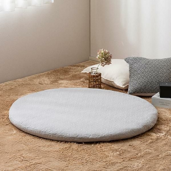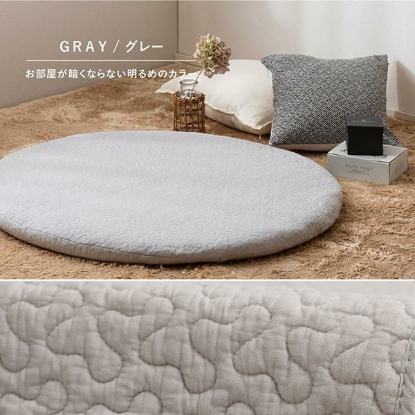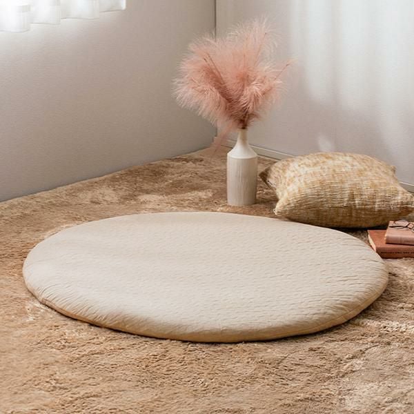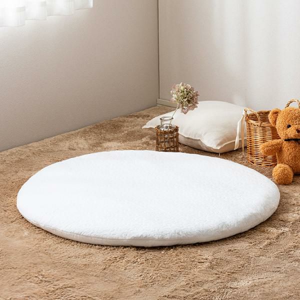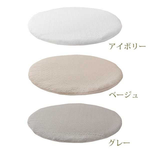 コットン100%で赤ちゃんの肌にもやさしく、まるいフォルムがかわいいベビーマット。