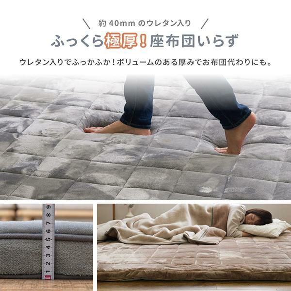 裏には滑り止め付きで、フローリングでも滑りにくく、お布団代わりにも。リビングや子供部屋にもオススメです。