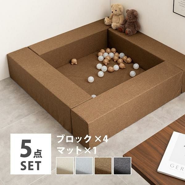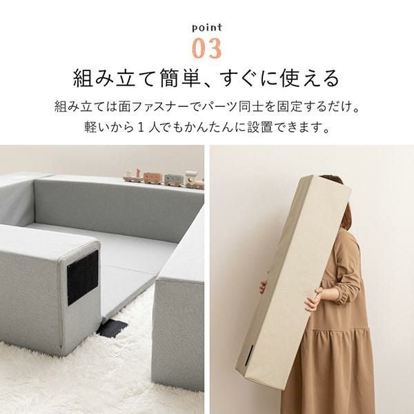 はっ水加工でお手入れしやすく、各パーツの裏面は滑り止め付きでズレにくいのもうれしいポイント。ブロック4とマット1枚がセットになっており、軽量で組み立ても簡単!届いてすぐにおしゃれなキッズスペースがつくれます。