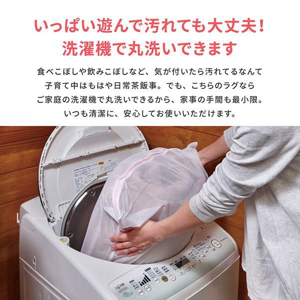 デザインだけでなく使いやすさも人気の秘密!汚れてもご家庭の洗濯機で丸洗いできます。また、ウレタン入りで程よいクッション性があり、表面は毛足が短くさらさら優しいタッチ感。裏面は滑りにくい加工付き。ホットカーペットや床暖房に対応しており、オールシーズンお使いいただけます。