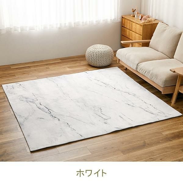 大理石柄プリントで、海外風インテリアやホワイトコーデにもあうシックなデザイン。ソフトフランネルのなめらかな肌触りは、思わず素肌で触れたくなるようなタッチ感です。短毛でやわらかく、コンパクトに折りたためるから収納にも困らず、お手入れも簡単。汚れても洗えるからいつも清潔にお使いいただけます。裏面には滑り止め付きでフローリングの上でもズレにくく安心です。寒い季節もあたたかく過ごせるよう、ホットカーペット・床暖房に対応しています。