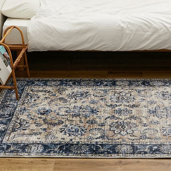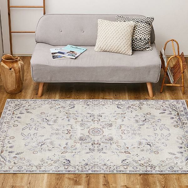 高級感のあるオリエンタル調デザインの転写プリントラグ。転写だからできる繊細な模様の表現と、かすれたようなデザインでシャビーシックなインテリアにもぴったりです。ソフトフランネルのなめらかな肌触りは、思わず素肌で触れたくなるようなタッチ感。薄手でコンパクトに畳めるので収納にも困らず、気分にあわせてお部屋の模様替えができちゃうのも嬉しいポイントです。裏面はズレを軽減するすべり止め付き。ホットカーペット・床暖房に対応しており、オールシーズンで使えます。