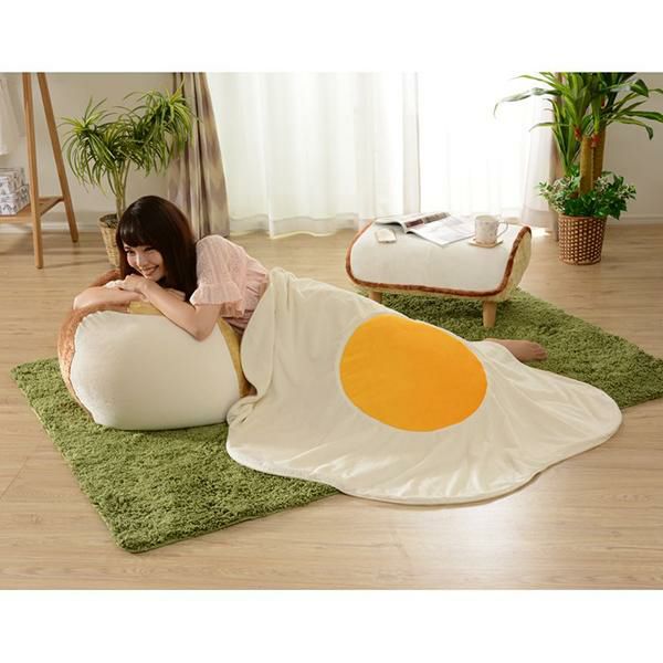 目玉焼きに包まれる!?肌触りが心地よいブランケット(Lサイズ)♪