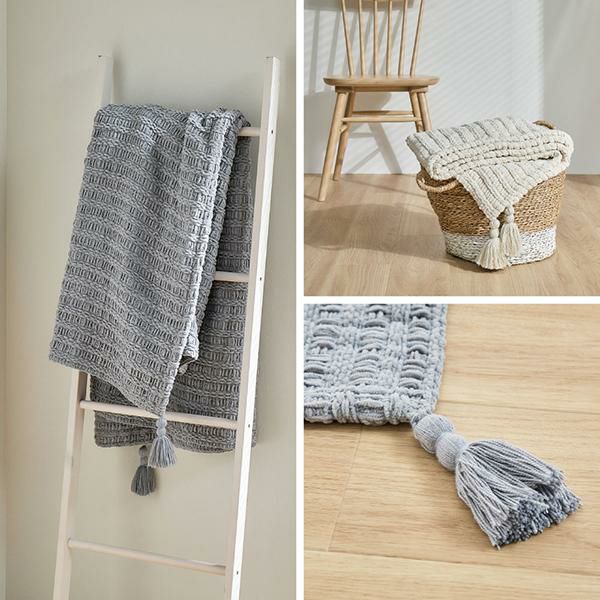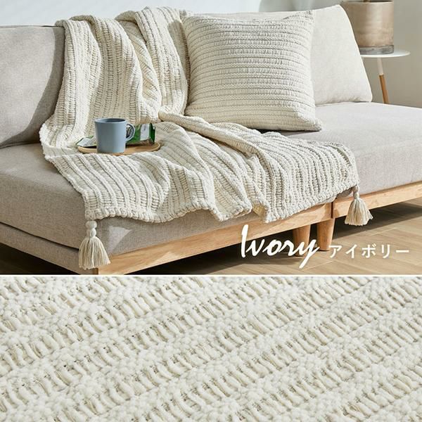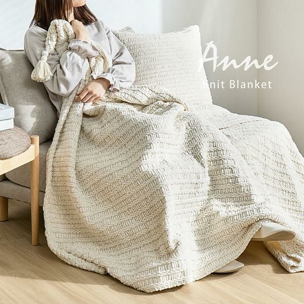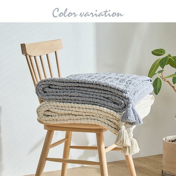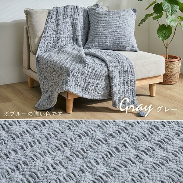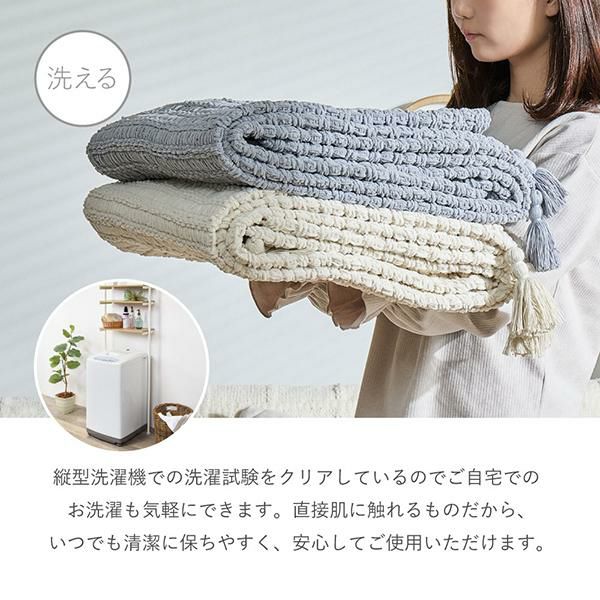 ブランケットとしてはもちろん、 ベッドスタイリングやソファカバーとして お部屋に優しく温もりを添えてくれます。柔らかい糸を丁寧に編み上げているので、 しっかりとした厚みと、思わず触れたくなるような 心地よいタッチ感が特徴。汚れても洗濯機で丸洗いできるから、 いつでも清潔&快適に。便利な収納袋付きで、 使わないときは袋に入れて「クッション」としても。 持ち運びにもぴったりで、シーズンレスに使っていただけます。