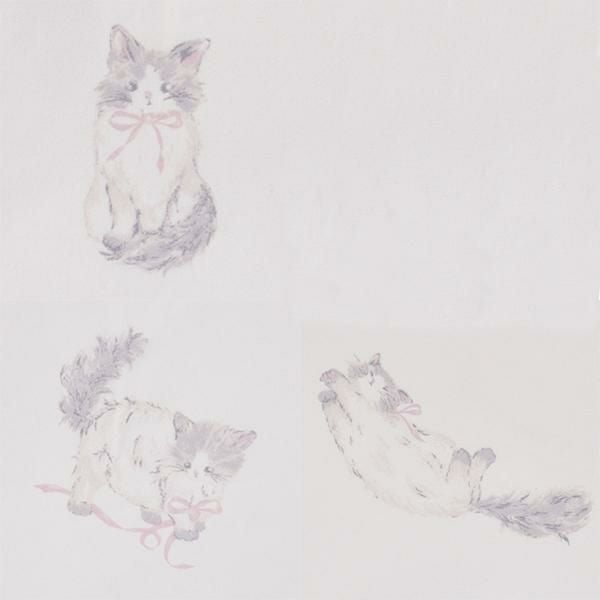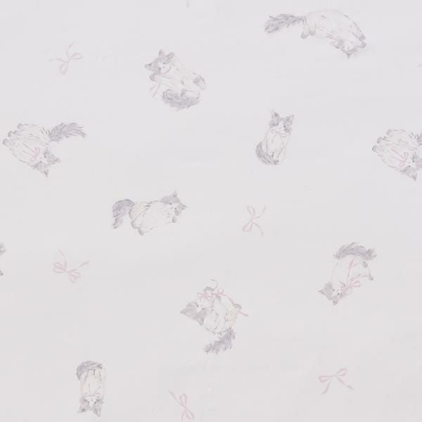 ピンクのリボンを首に結んだ、愛らしいネコたちのプリントが魅力の布団カバー3点セット。すっきりとしたホワイトカラーに淡いグレーとピンクで描かれたネコたちがお部屋にそっと甘さと癒しを添えてくれます。掛けカバーの衿元とピローケースの周囲にはたっぷりとしたフリルをあしらい、可愛いらしさをプラス。ベッドシーツはボックスタイプなのでベッドの高さを選ばずにご使用いただけます。掛けカバーの裏面は淡く優しい無地のピンクカラーで上品な印象に仕上げました。