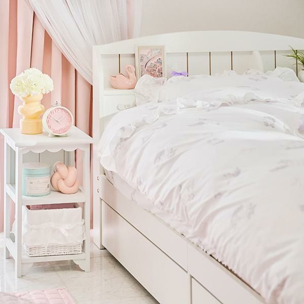 可愛いだけじゃなく、毎日の寝心地にもこだわったピーチスキン加工で、肌ざわりもなめらか。洗濯機で洗えるから、いつでも清潔に使えてお手入れもらくらくです。3点セットなので、トータルコーディネートが完成するのも嬉しいポイント。「かわいい」と「やすらぎ」を両方叶えてくれる、毎日が楽しみになるベッドアイテムです。