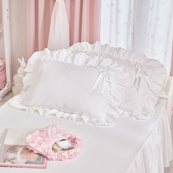 ※本製品に使用しているフリルやリボンは繊細な装飾パーツのため、強く引っ張ったり、無理な力を加えると破損やほつれの原因となります。お取り扱いの際はやさしくご使用ください。また、洗濯時やベッドメイクの際にも無理に引っ張らず、形を整えながらやさしく扱っていただくことをおすすめします。