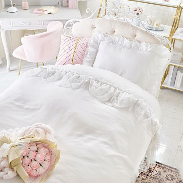 デコレーションケーキのようなチュールたっぷりの掛け布団カバー。