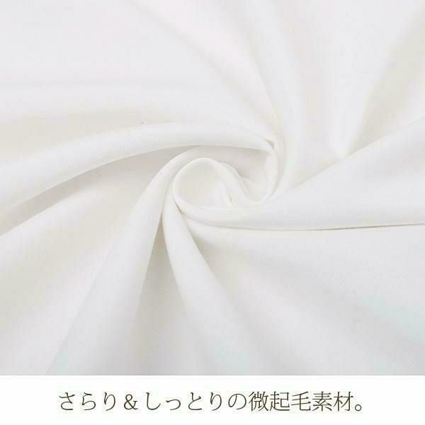 やわらかなピーチスキンのような微起毛素材を使用しオールシーズン使用可能です。しっとりと肌に馴染むのに、サラっとした肌触りが心地よく、しわになりにくいので取り扱いもしやすいのが特徴。