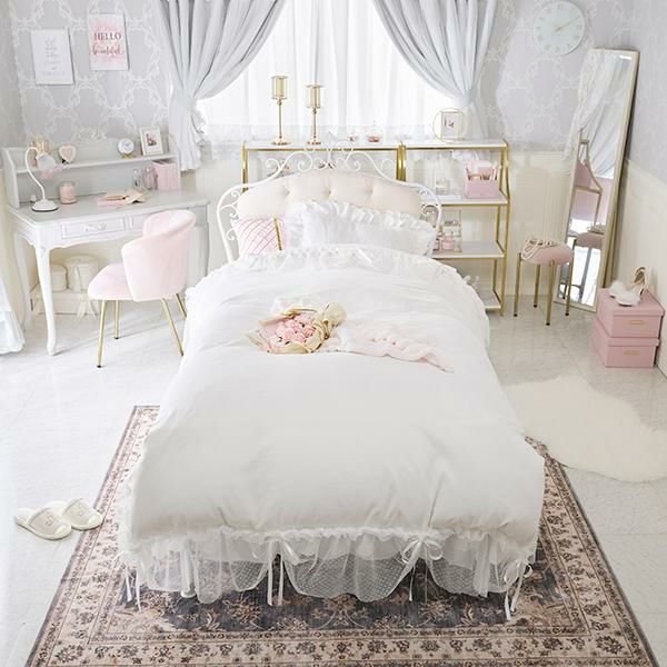 レースとフリルにリボン、オールホワイトでスイート&ロマンティックな雰囲気を盛り上げてくれます♪