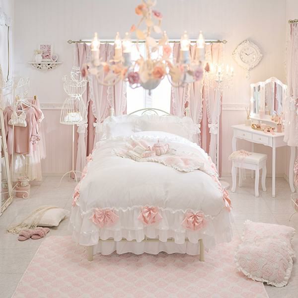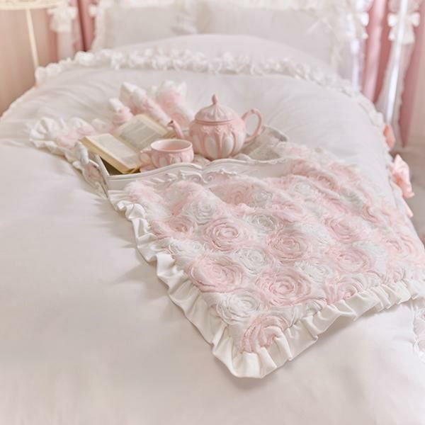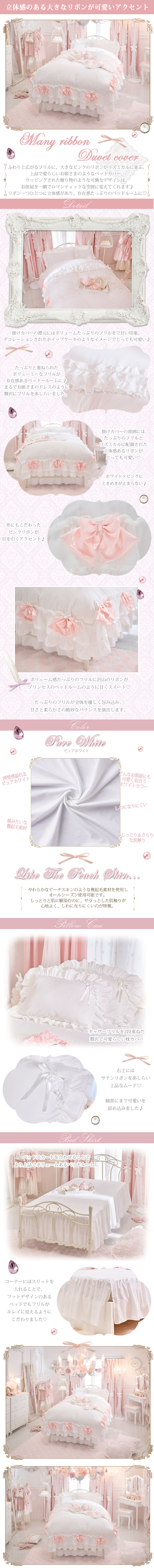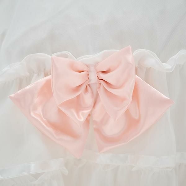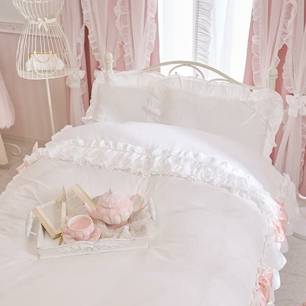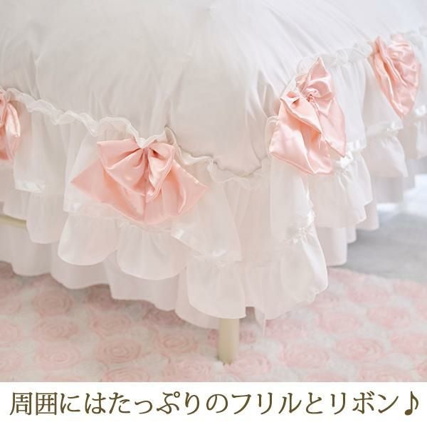 ※本製品に使用しているフリルやリボンは繊細な装飾パーツのため、強く引っ張ったり、無理な力を加えると破損やほつれの原因となります。お取り扱いの際はやさしくご使用ください。また、洗濯時やベッドメイクの際にも無理に引っ張らず、形を整えながらやさしく扱っていただくことをおすすめします。