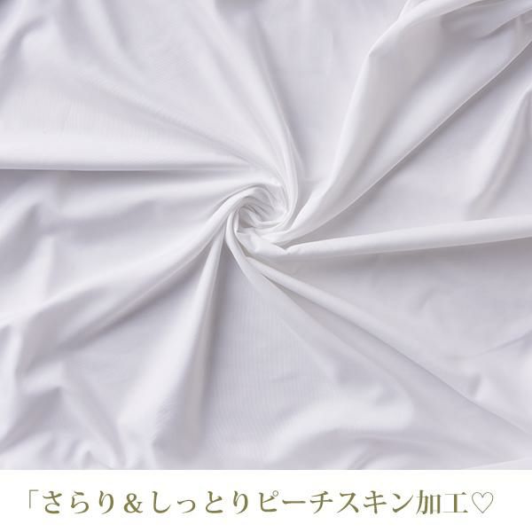 柔らかなピーチスキンのような微起毛素材を使用しオールシーズン使用可能。ピュアホワイトの生地はしっとりと肌に馴染むのに、サラっとした肌触りが心地よく、ポリエステル素材はしわになりにくいので取り扱いもしやすいのが特徴♪