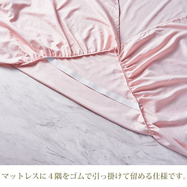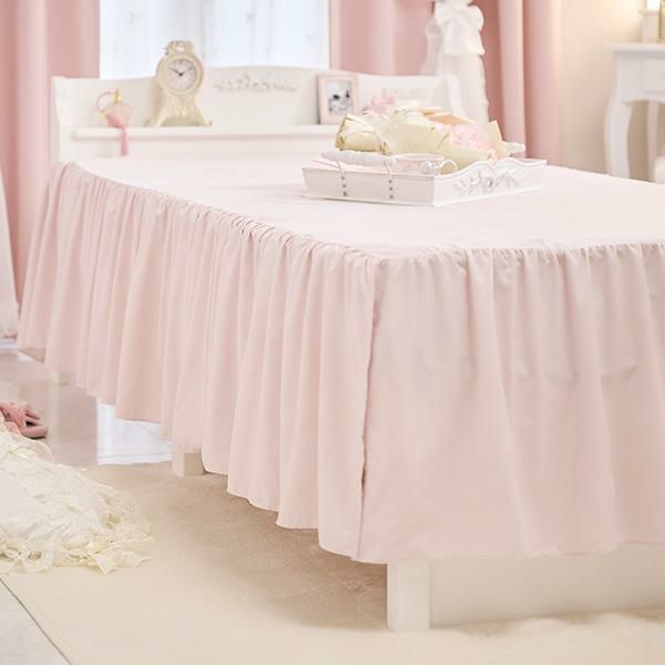 柔らかなピーチスキンのような微起毛素材を使用した、スカート仕様のシーツ。甘くなりすぎない落ち着いたピンクカラーでベッド下のスペースを上品に目隠しできます♪しっとりと肌に馴染むのに、サラっとした肌触りが心地よく、ポリエステル素材はしわになりにくいので取り扱いもしやすいのが特徴♪シンプルで上品なデザインは、主張しすぎずお気に入りの掛け布団カバーに合わせやすいデザイン。四隅にゴムバンド付きなのでしっかりとフィットし、コーナーにはスリットがはいっているのでギャザーフリルを綺麗に見せられます。少し生地が厚くなったので、以前の商品よりも透けにくくなりました!