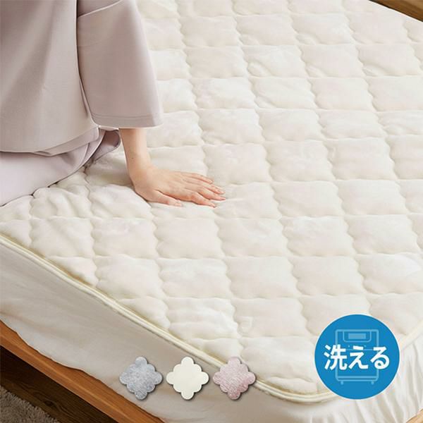 接地面に繊維同士がくっつく特殊生地を使用し、吸い付くような密着感でズレにくさを実現しました。メレンゲみたいにとりけるフランネルの滑らかな肌触りが心地よい敷パッド。ゴムベルトなしで、お使いのベッドスカートやボックスシーツのデザインの邪魔をしません。お部屋に合わせやすい無地柄でくすみ感のある可愛いカラーです。