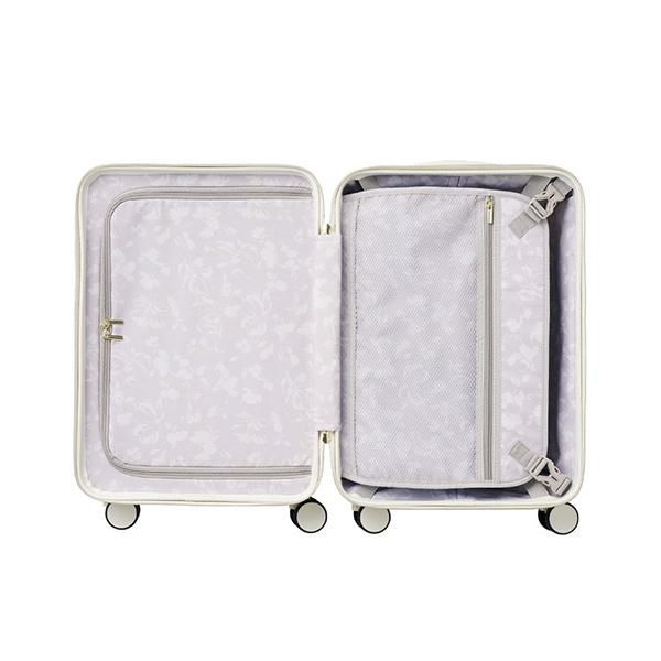 内生地はブランドオリジナルデザインで、スーツケースを開けるたびに心が躍ること間違いなしです。
