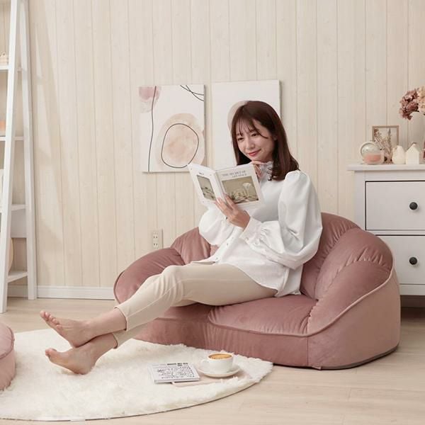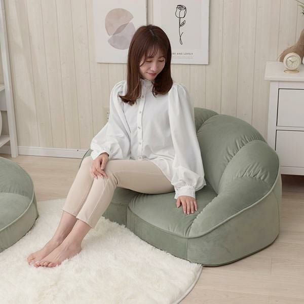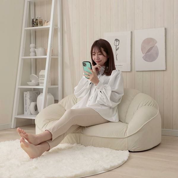 貝殻をモチーフにしたフォルムがかわいいローソファは置くだけでお部屋の主役に。