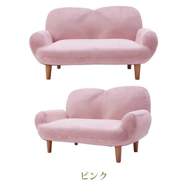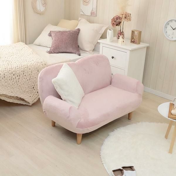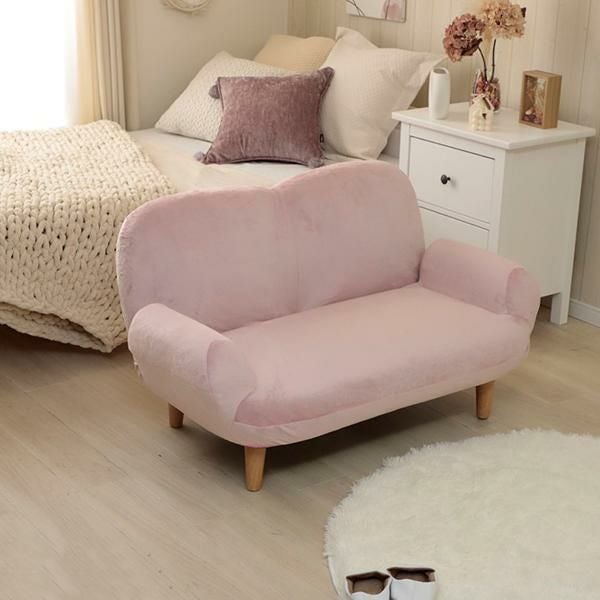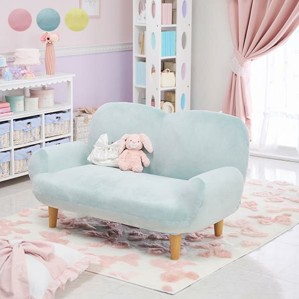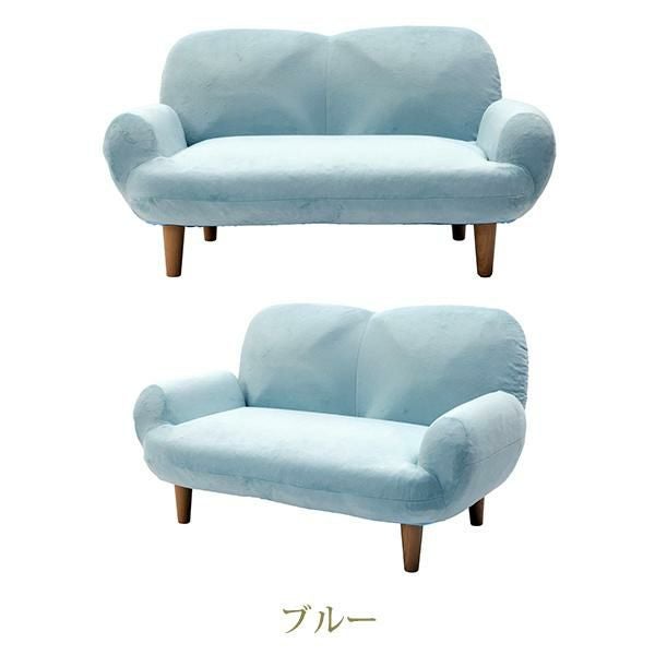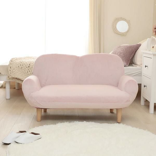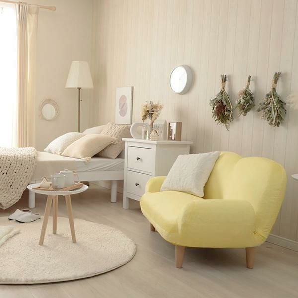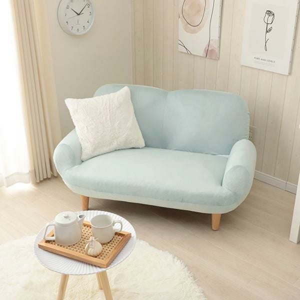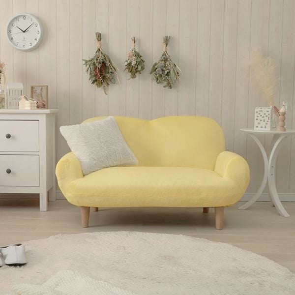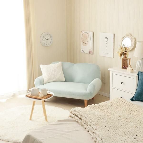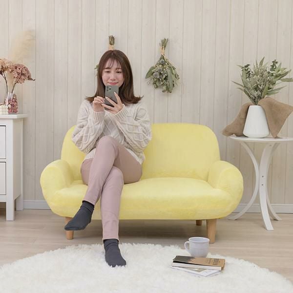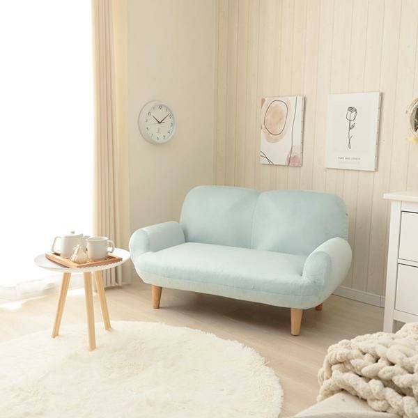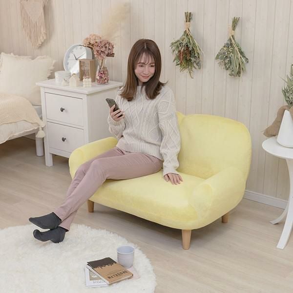 コンパクトなサイズ感と丸いフォルムがかわいい2人掛け脚付きソファ