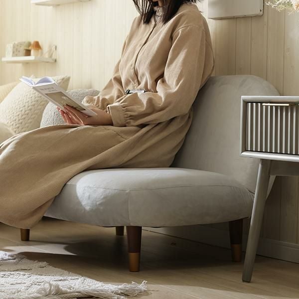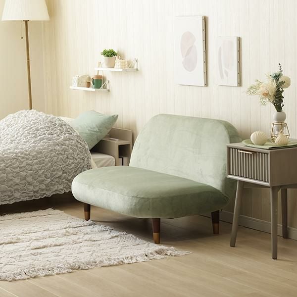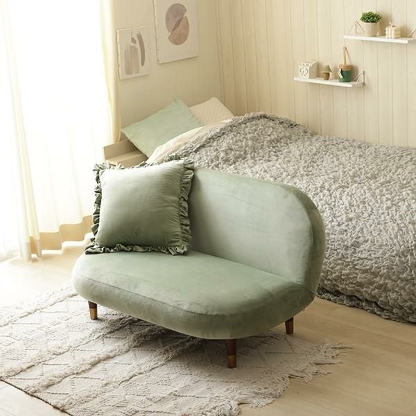 コロンとした丸い背もたれが可愛い、脚付きリクライニングソファ