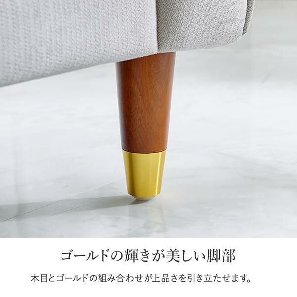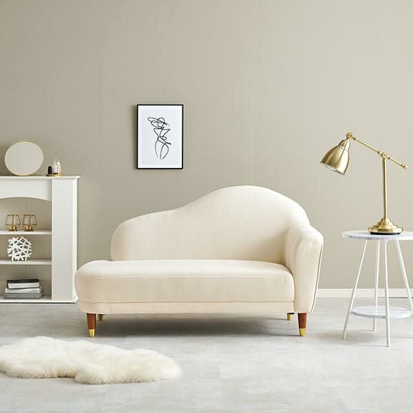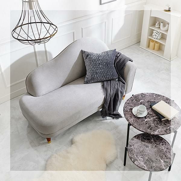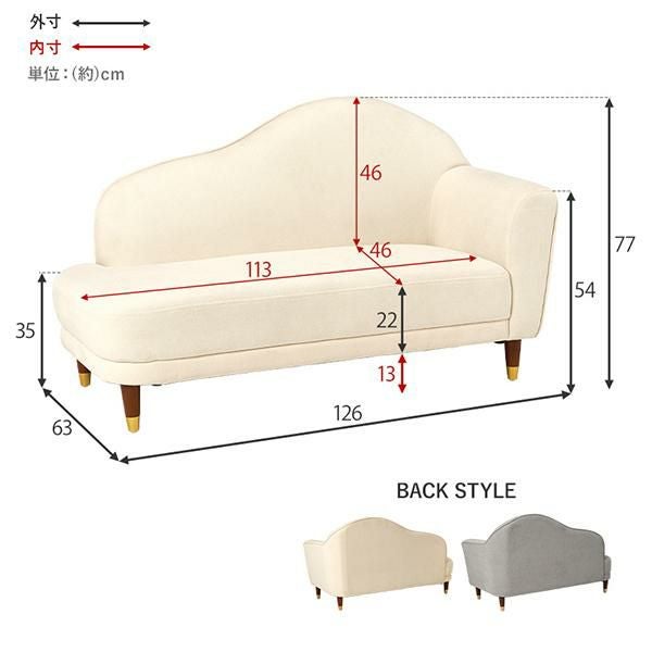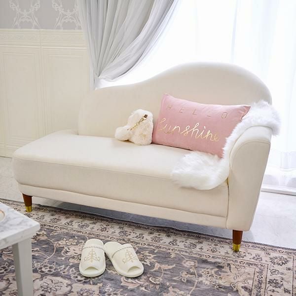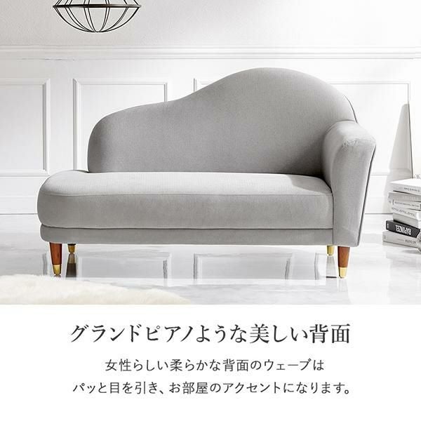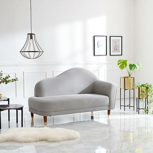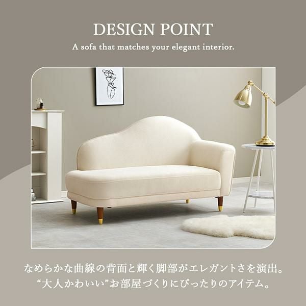 滑らかな曲線の背面と輝く脚部がエレガントさを演出。大人可愛いお部屋づくりにピッタリなソファです。