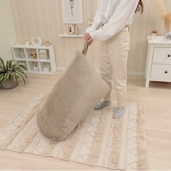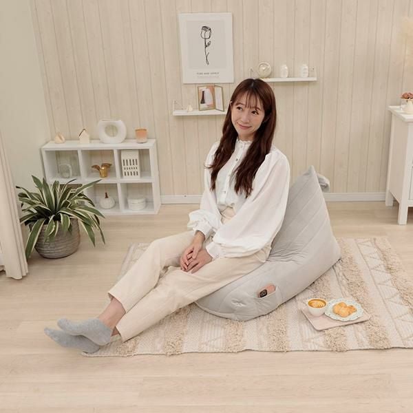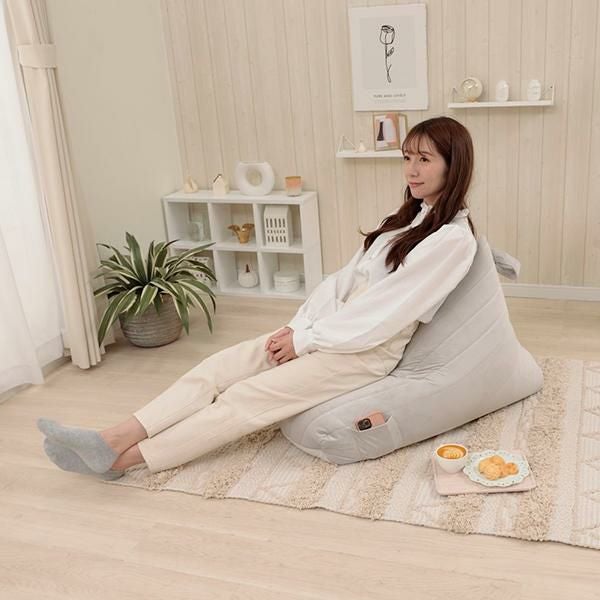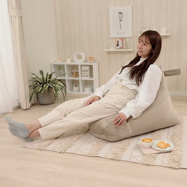 くすみカラーがインテリアにも可愛くなじむビーズソファー。背もたれができるからゆったり、リラックスできます。