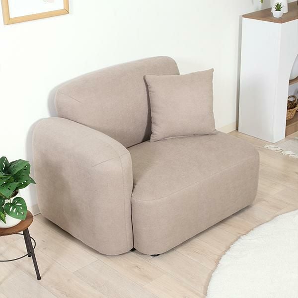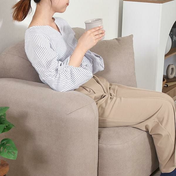 一人掛けでも座面幅75×奥行53cmの広々としたサイズで、胡坐をかいたり横座りしたりと様々な体勢で楽しめます。ボリュームのあるひじ掛けに身体を預けてリラックス♪