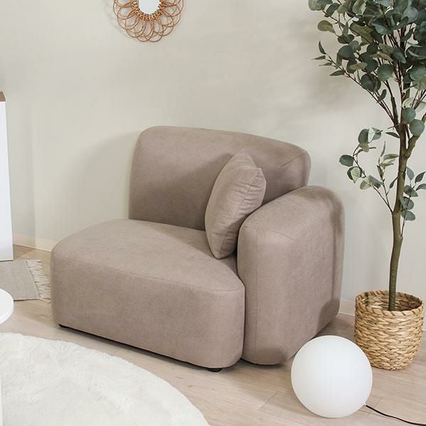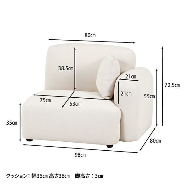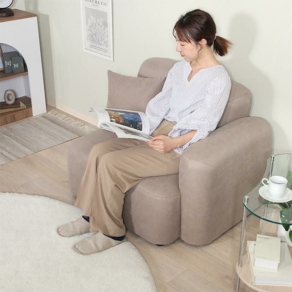 一人掛けでも座面幅75×奥行53cmの広々としたサイズで、胡坐をかいたり横座りしたりと様々な体勢で楽しめます。ボリュームのあるひじ掛けに身体を預けてリラックス♪