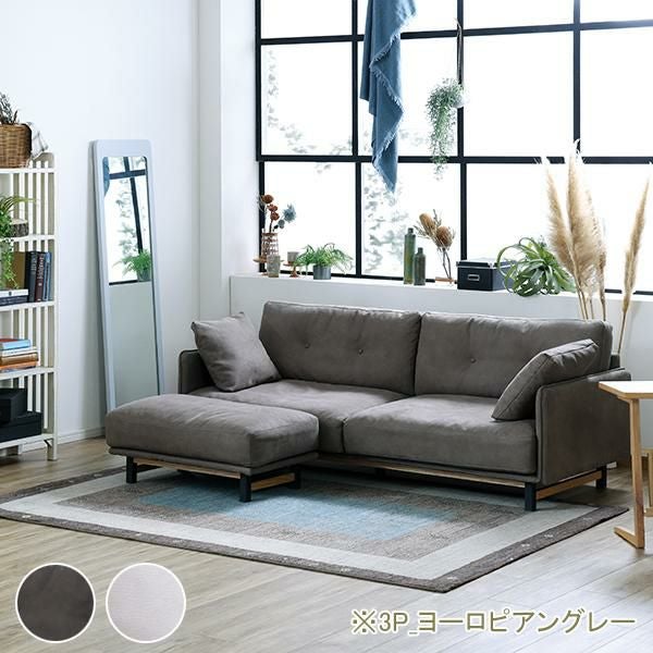 【直送】カバーが洗えるくすみダスティカラーのコーナーソファ3点セット