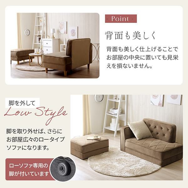 【直送】【お届けグループB】コンパクト5wayカウチソファ/ベロア調