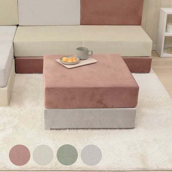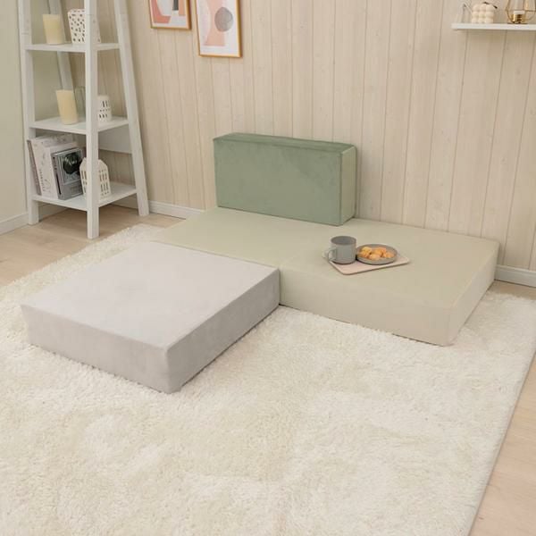 大人可愛いベロアのくすみカラーを積み木のようなブロックソファーにしました。