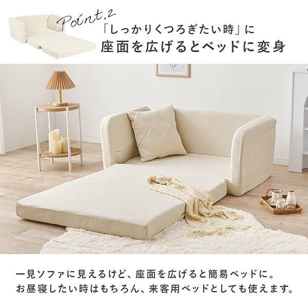 「しっかりくつろぎたい時」には座面を広げるとベッドに変身!