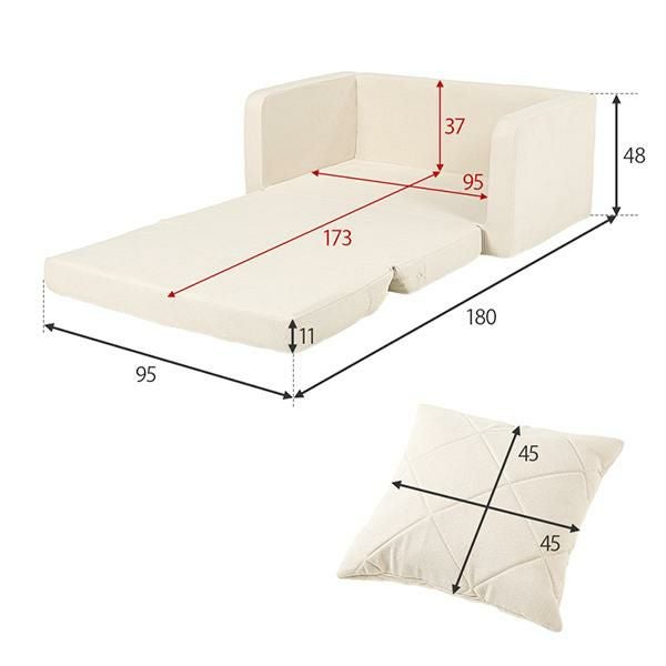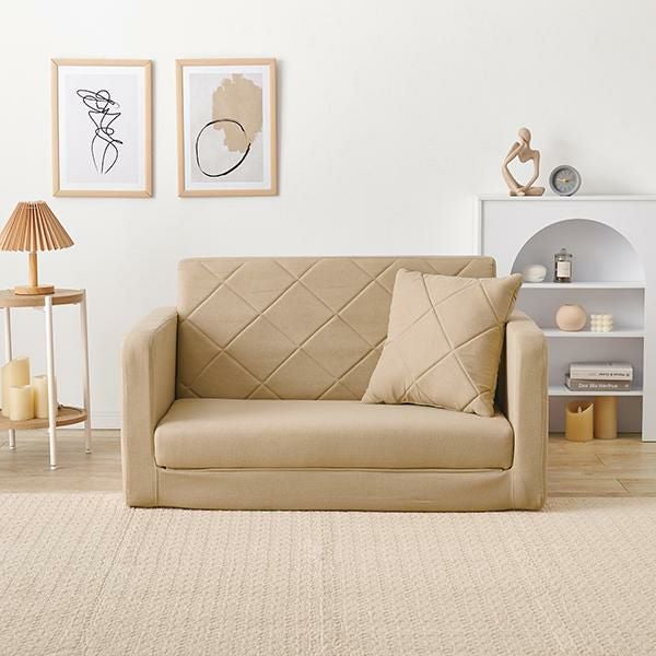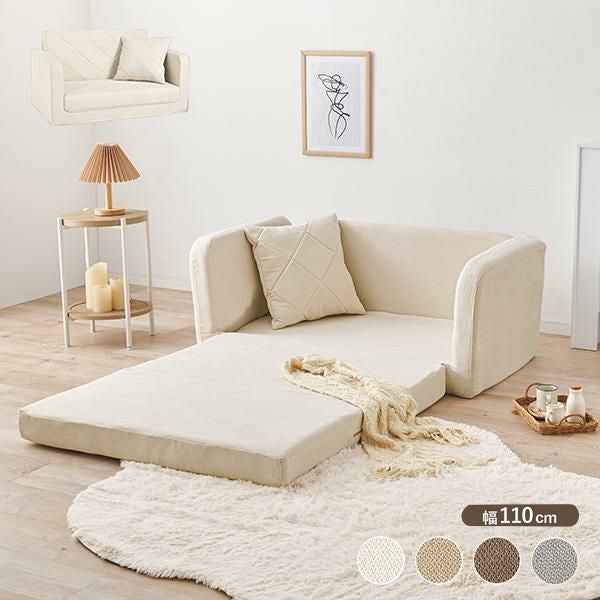 ミルキーな淡色カラーが可愛い、広げるだけでベッドになるソファ