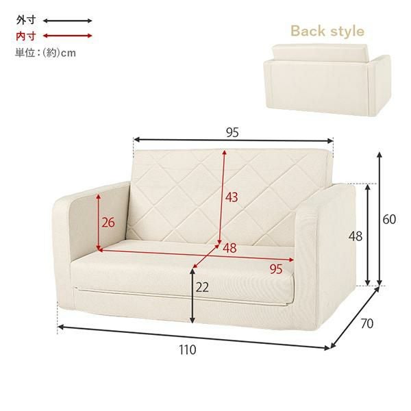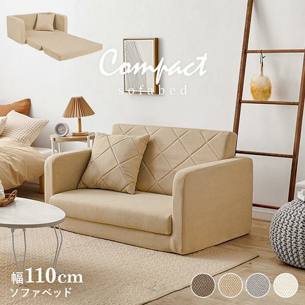 幅110cmなのでコンパクトなワンルームにもスッキリと置きやすく、ベッドとソファの両立が叶います。