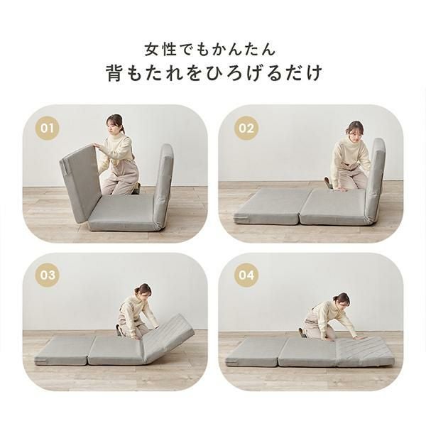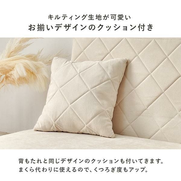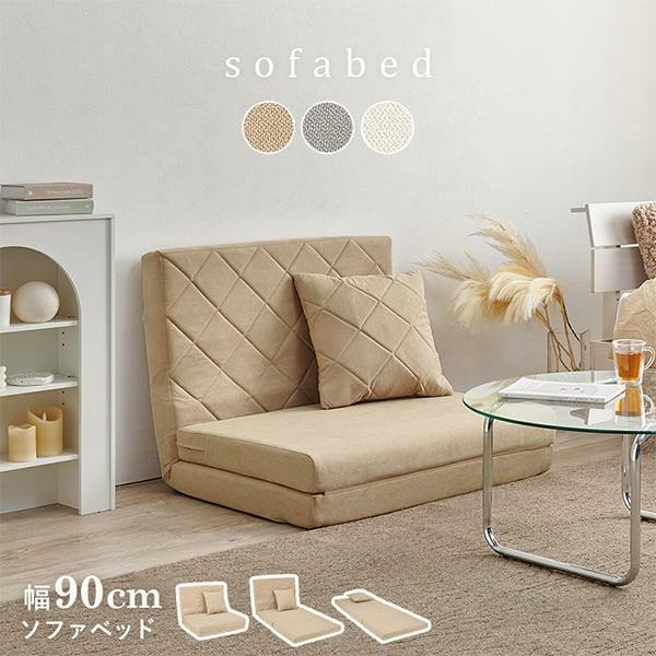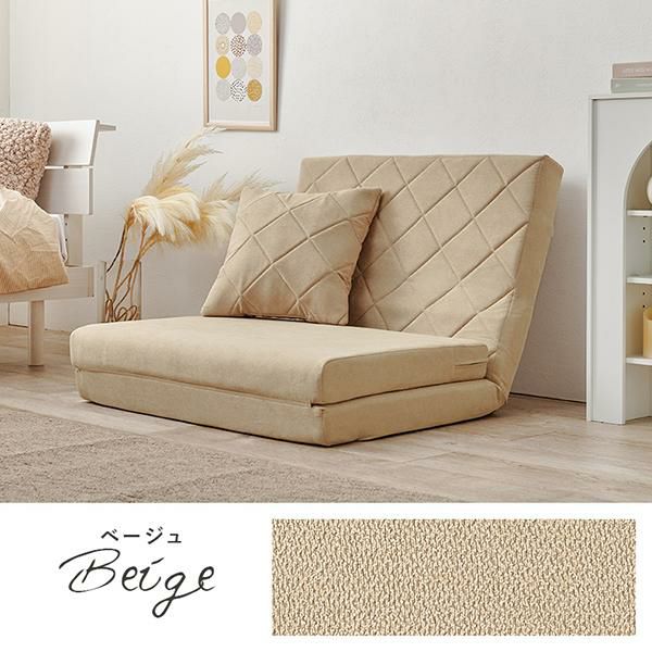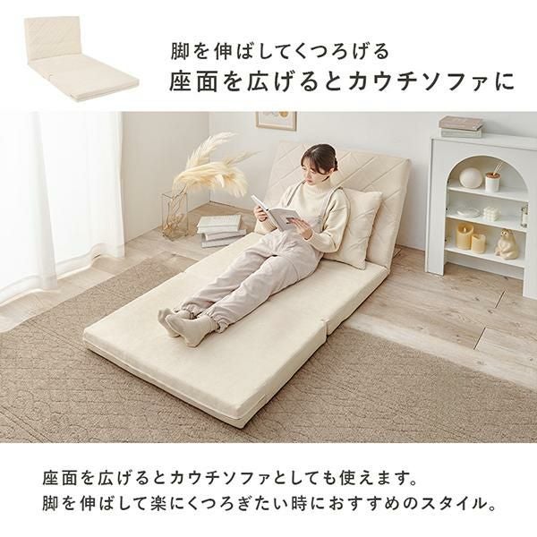 毎日のちょっとしたくつろぎ場所になるコンパクトソファ。ミルキーな淡色カラーでほんのり可愛いお部屋に。寝ころんでくつろぎたい時は座面を広げるとベッドに変身♪お昼寝したい時はもちろん、来客用の簡易ベッドとしてもご使用いただけます。使い方色々で、背もたれは14段階のリクライニング機能付きで座面を広げるてカウチソファとしても。折りたためるのでお掃除や移動の時にはコンパクトにできます。背もたれのキルティングがかわいいアクセントになり、狭い空間にもすっきりと置きやすい幅90cmでワンルームにオススメです。