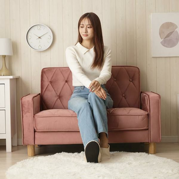 落ち着いたくすみピンクでとにかくめっちゃ可愛いです!( ˆ ˆ * )しっかりしていて座るとかためのソファ。この値段でこんな可愛いのなかなかないです。買ってよかった!とても気に入りました。(よぅさん)