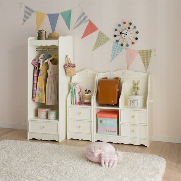 キュートなリボンレリーフとクリスタルの取っ手が可愛いランドセルラック。かわいらしさだけではなく、コンパクトだけどたっぷり収納できて、お片付けが楽しくなりそうな実用的なアイテムです。