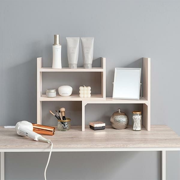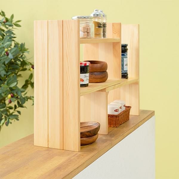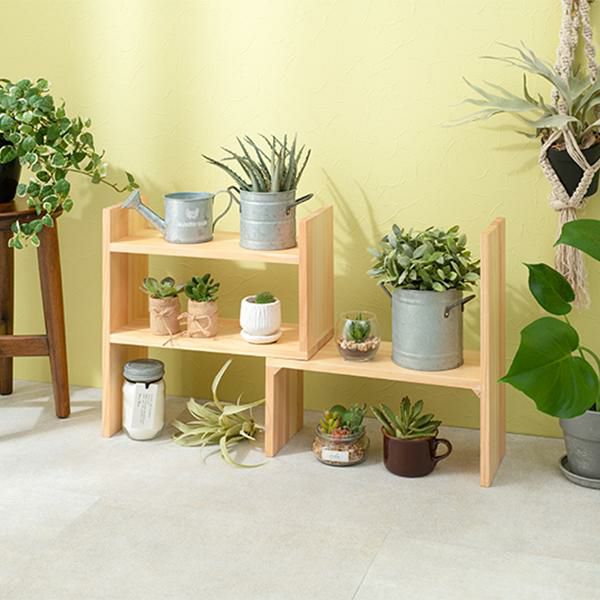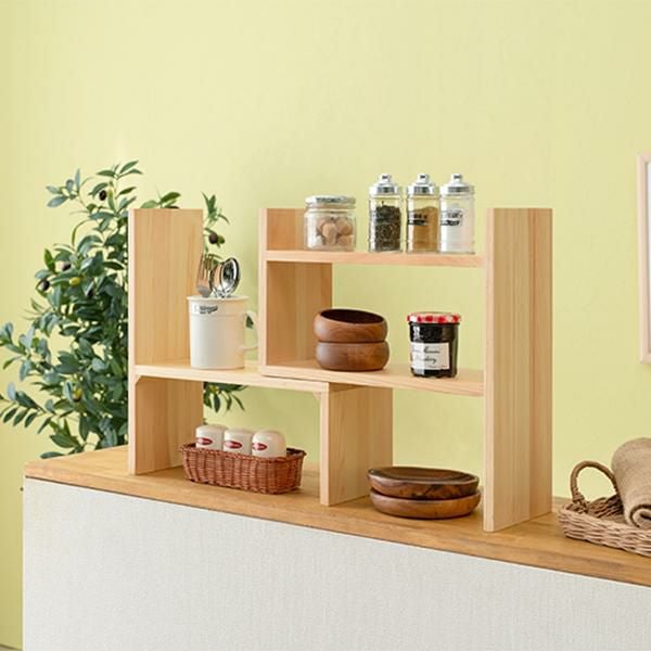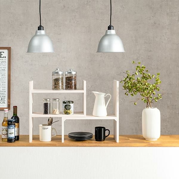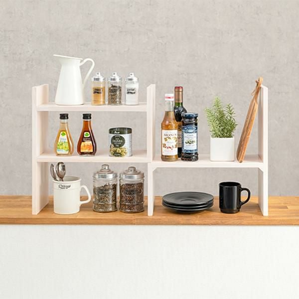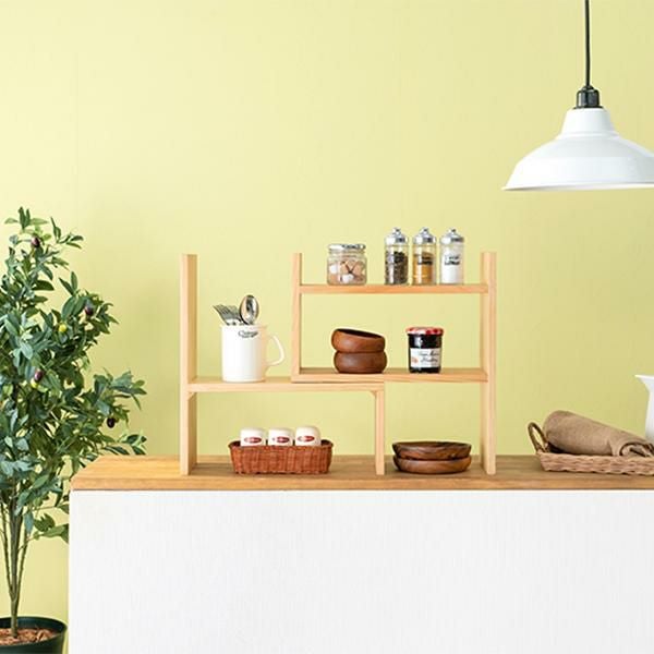置きたいものや場所に合わせてレイアウト可能な伸縮ラック。調味料等のキッチン用品やデスク回りの小物置き、観葉植物などお気に入りのアイテムをディスプレイできます。