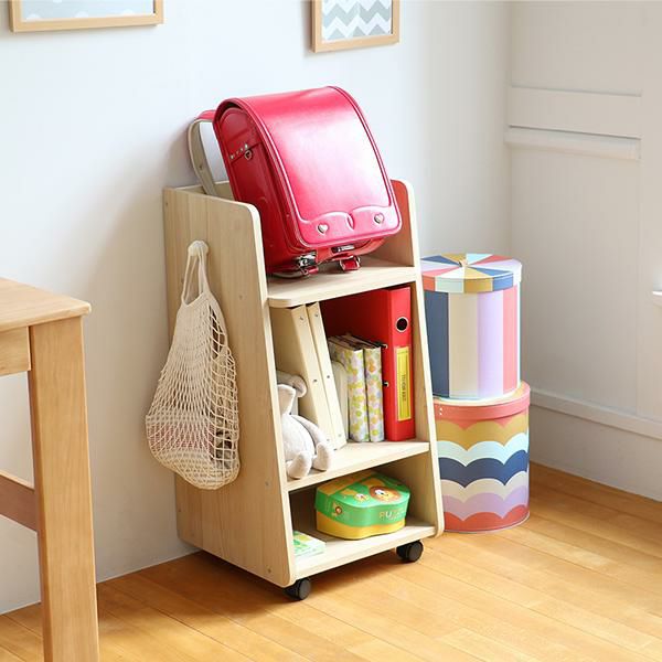 勉強道具をまとめて収納できる便利なランドセルラック!散らかりがちな教科書や勉強道具をひとまとめにできるので忘れ物が減りそうです。キャスター付きで移動も簡単!ストッパー付きで安全に使えちゃう。ランドセルをタテ・ヨコどちらでも置くことができます。マガジンラックや小物収納スペースとしてもおすすめ。A4ファイル(22cm×31cm)が余裕で収まるサイズなので教科書収納にはもちろん絵の具セットなど学校で使うものを一か所にまとめてすっきり収納◎簡単に取り外しできる棚の仕切り板付きで、収納するものに合わせてつかえます。左右には便利なフック付き♪