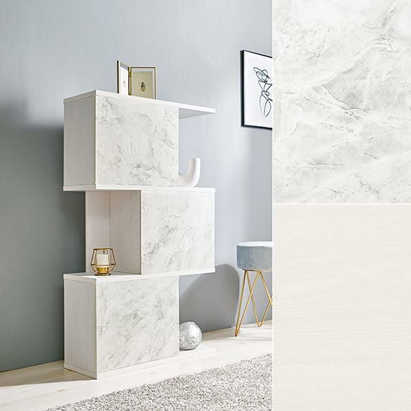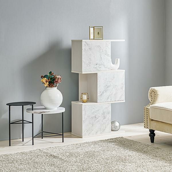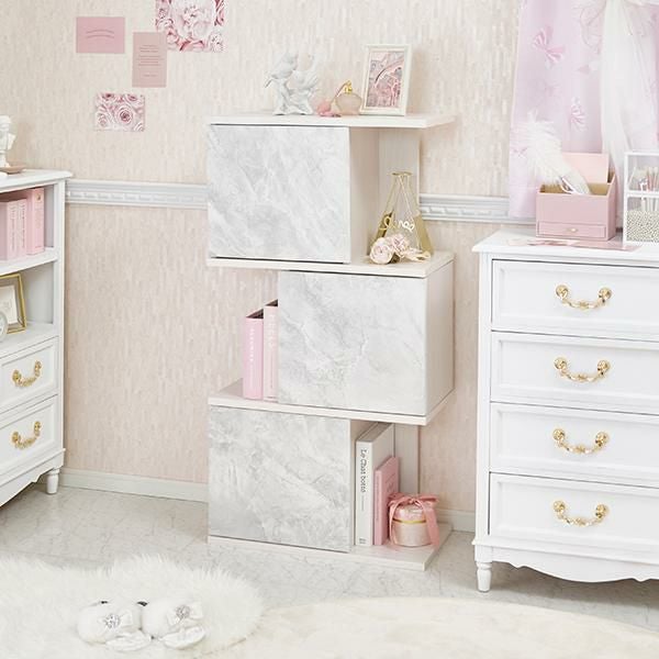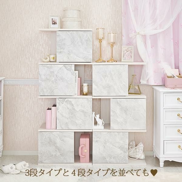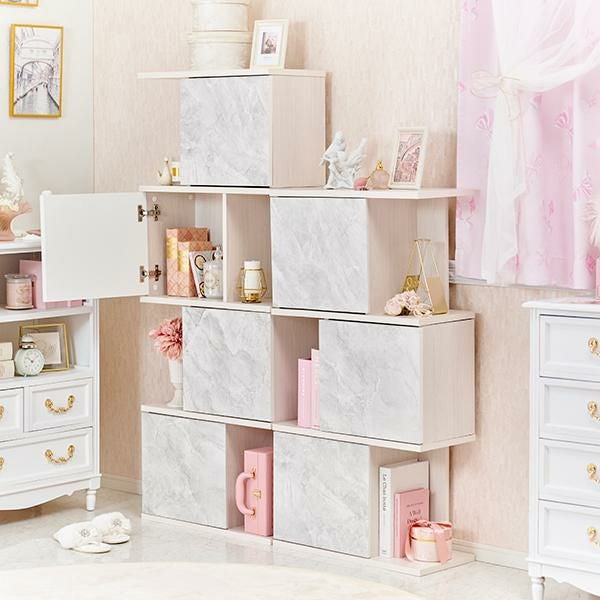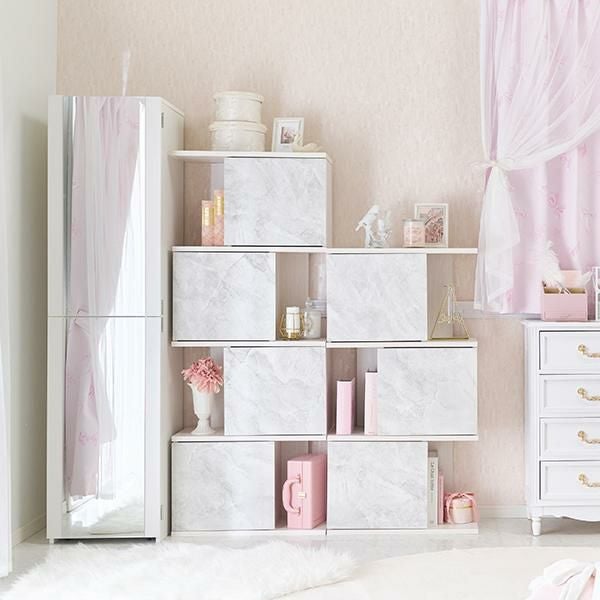 置くだけで上質な空間に!大理石調の扉のついたオープン収納。