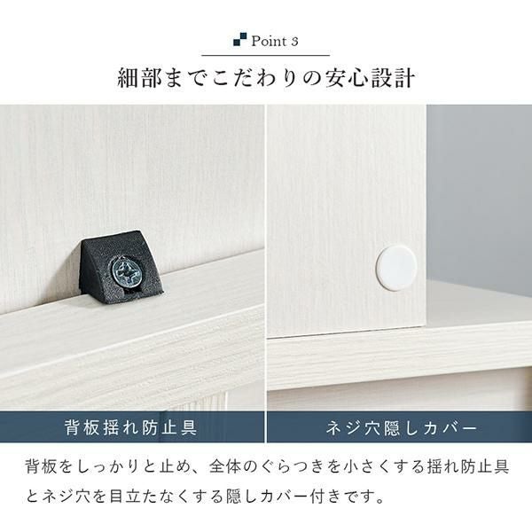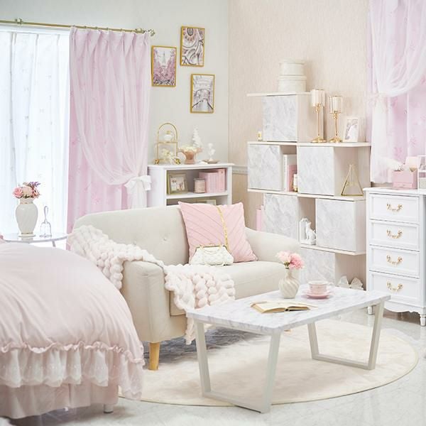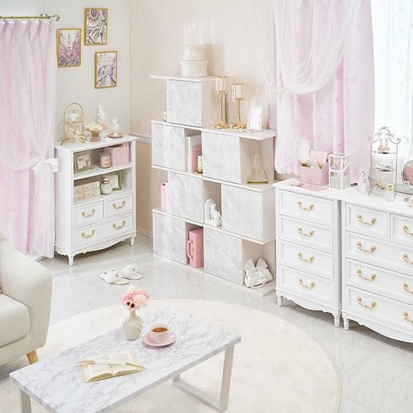 サイドオープンスペースではお気に入りの小物をかわいくディスプレイ♪背板がついているので本も落下の心配なく置けます。