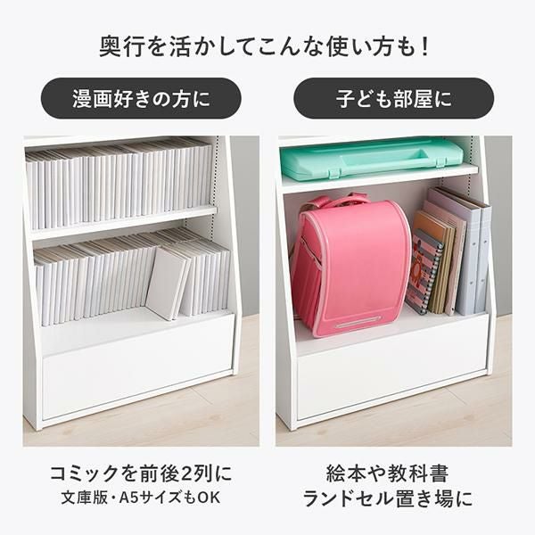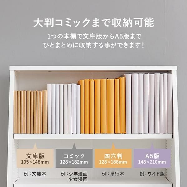 文庫本から、A4サイズまで様々な本をすっきり収納。可動棚を取り外すと更に棚全体を広く使えます。