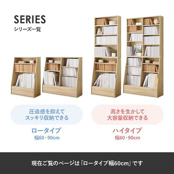 たっぷり収納が叶う、幅60cmのロータイプの本棚ラック。
