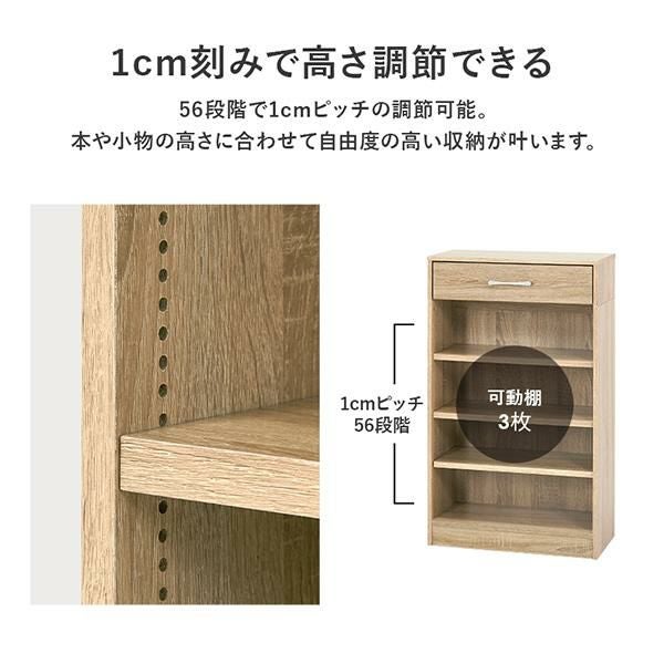 1cm刻みで棚板高さが調節できるので、本の高さに合わせて無駄なく調節できます。