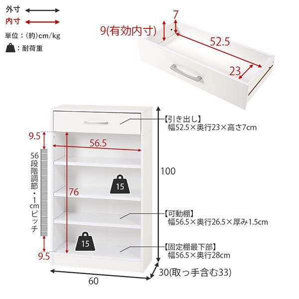可動棚耐荷重:約15kg