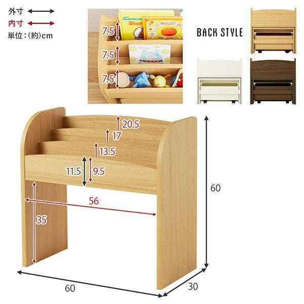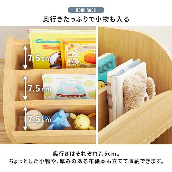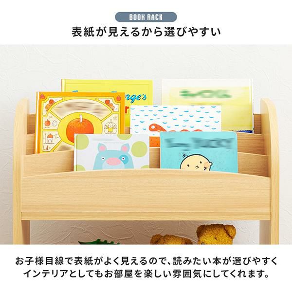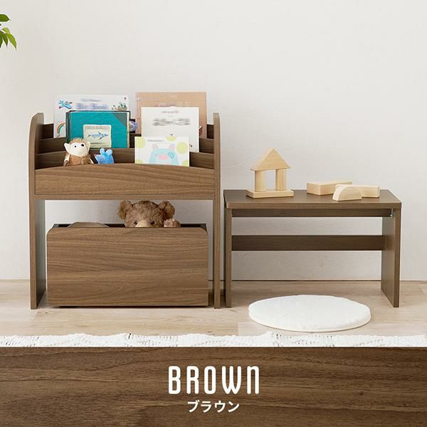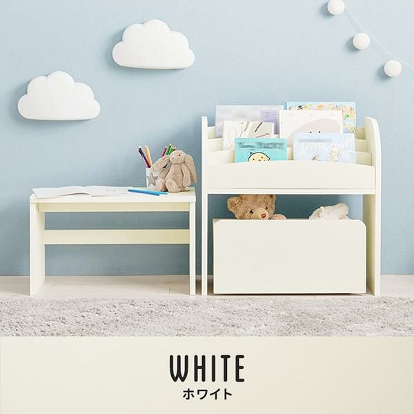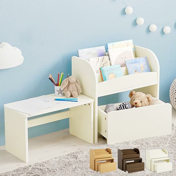 表紙が見えやすい「絵本ラック」、ぴたっとしまえる「ミニデスク」、「キャスター付きワゴン」の3点セット!