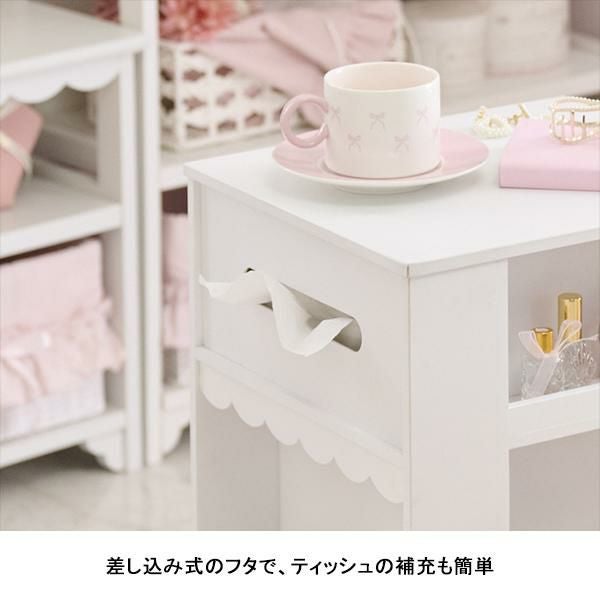 ※リボンモチーフは飾りのため、引っ張らないでください。破損する可能性があります。側板の無い天板角部に荷重をかけると引出しが引出しにくくなる場合がありますので、ご注意ください。
