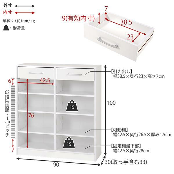 【直送】【お届けグループD】たっぷり収納本棚(幅90cm・上部引出し付)
