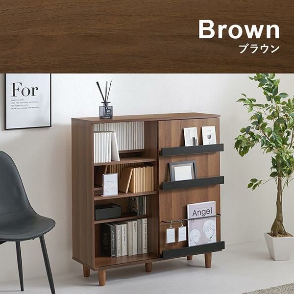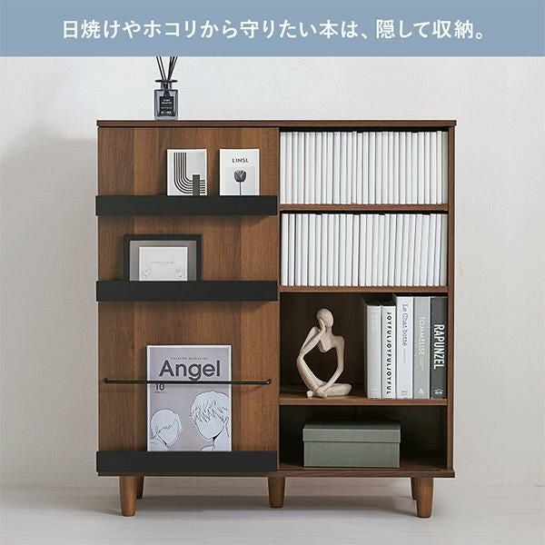 片側にスライド扉が付いたたっぷり収納&ディスプレイが叶うブックシェルフ♪